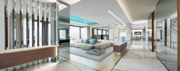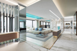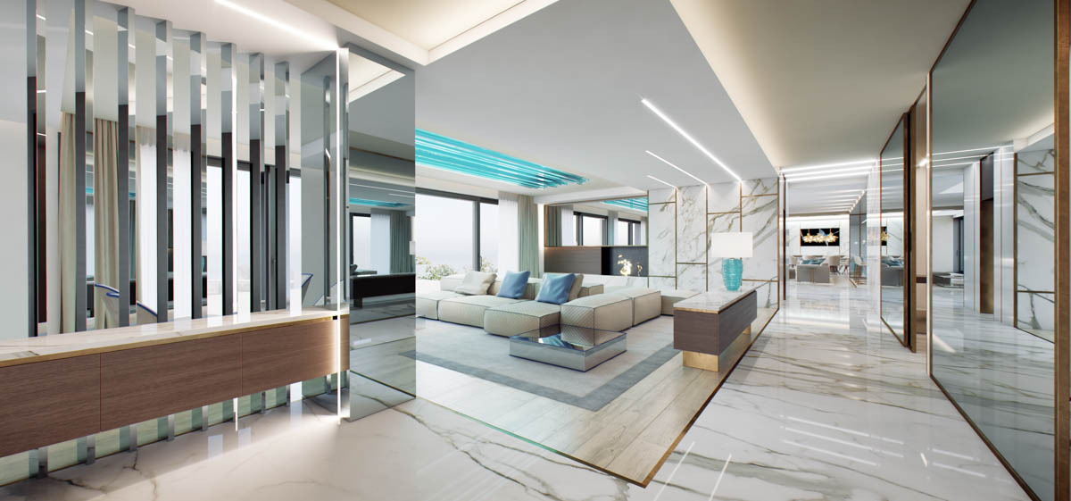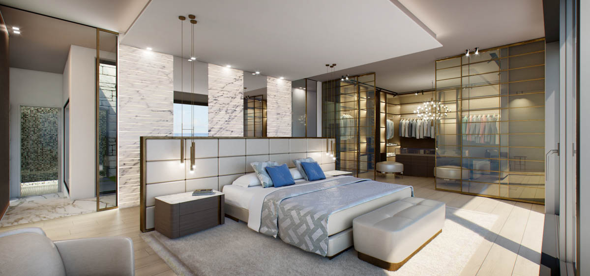 Villa in Costa Azzura, su tre piani per un totale di circa 1000 mq al grezzo è stato realizzato un progetto di interno ed esterni con elevati standard estetici utilizzando materiali di pregio. La realizzazione di un moodbord iniziale ha definito lo stile, i colori, i materiali, gli oggetti per la realizzazione di ogni stanza studiata attraverso la scelta dei tessuti, dei marmi, delle essenze, dell’illuminazione e complementi d’arredo al fine di ottenere un progetto curato in ogni minimo dettaglio. La posizione unica della proprietà ha ispirato e contaminato interamente il progetto.