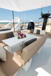 Progettiamo non solo il layout degli interni ma anche degli esterni, dal disegno degli acciai di coperta della tappezzeria e complementi d’arredo per ambienti come pozzetto, prendisole e fly-bridge.